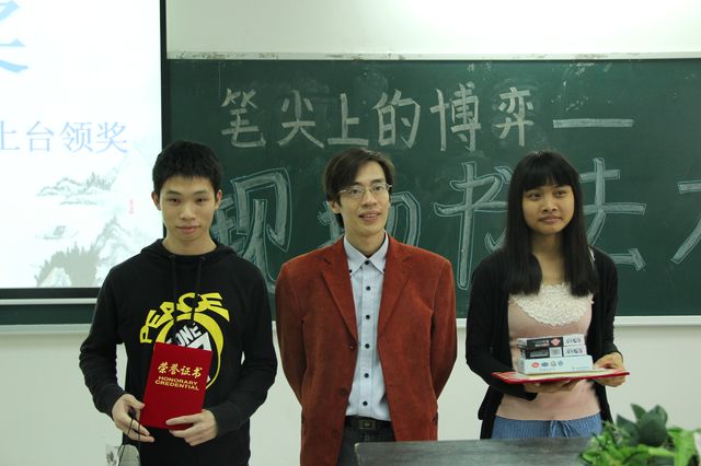 经评委们的评审,共产生了18位获奖选手,其中来自化学学院的刘建晖和教育学院的卢佩君两位选手脱颖而出,分别获得软笔、硬笔书法组比赛一等奖。其中数学学院唐子璐、蔡三希获得软笔书法二等奖,数学学院林文誉获得硬笔书法二等奖。此次大赛不仅为选手们提供了展示才能、切磋借鉴的平台,也为许多爱好法的同学搭建了沟通的桥梁,让更多的同学走近书法,感受审美,走进艺术。