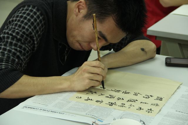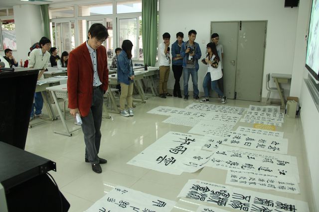 和土木工程学院、化学与化工学院联合举办的“笔尖上的博弈” ――主题书法大赛在理科北楼105课室举行。担任本次比赛评委的有土木学院党委副书记邓思清老师、人文学院青年书法家邓海涛老师、数学学院团委书记杜亚辉老师。此次大赛面向全校学生,旨在传承中国传统书法艺术,增进大学生文化底蕴,丰富大学生文化生活,吸引了众多书法爱好者参与。