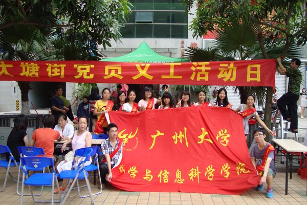 2013年7月17日,同学们参加大塘街道党员义工服务活动。本活动由党工委组织并发动辖内的热心党员义工参与,免费为辖内的党员和居民群众服务。他们免费为群众理发、磨刀、修理自行车、维修电器、测量血压、血脂、健康咨询、流动党员咨询等。在参与过程中,我们学生义工什么都觉得新鲜,并享受其中,争着去指引街坊、维持秩序。活动过程中,我们看到街坊们一脸笑容、满心欢喜。我们看到义工阿姨们眼中的满足与欣慰。我们理解到干好事,干实事,切切实实为街坊服务,是义工们的态度,更是他们的做事方式。