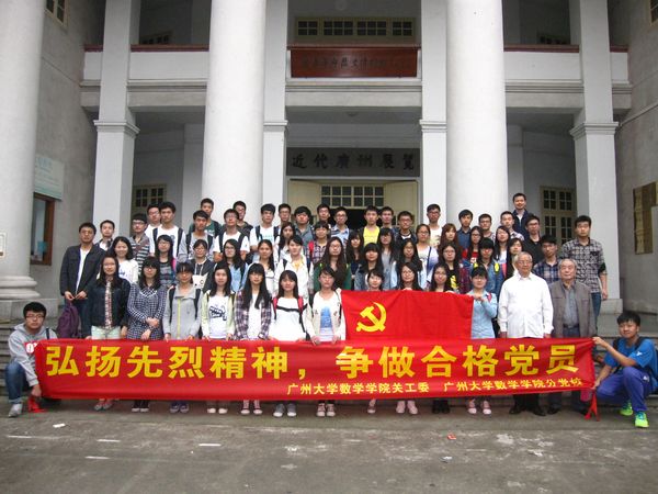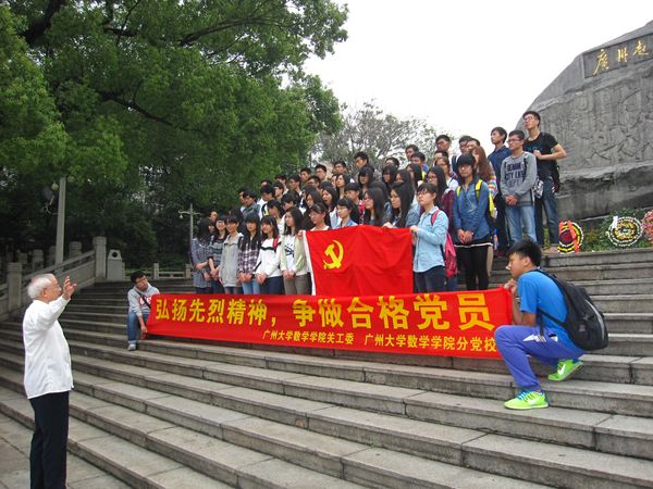 2014年4月8日,为缅怀革命英烈,继承发扬老一辈革命家的优良传统,深化入党积极分子教育和培养,数学学院分党校联合数学学院关工委在广州烈士陵园举行了以“弘扬先烈精神,争做合格党员”为主题的扫墓活动,国产探花
