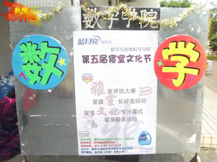 开幕式当天的活动是寝室联谊。女同学按事先抽签的分配到男生宿舍去,与男同学互相认识,一起玩游戏,建立友谊。通过女生访问男生宿舍, 促进男女生之间交流,提高数学学院学子的品德修养。除了寝室联谊外,本届寝室文化节还有雅室评比大赛和星级舍长评比等丰富活动。