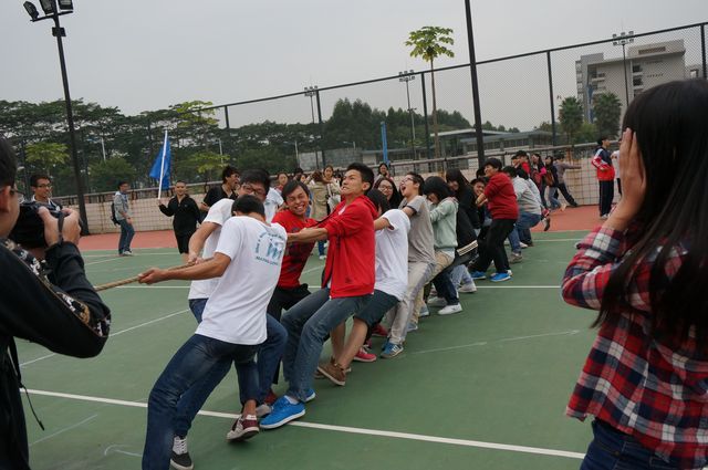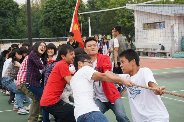 新生拔河比赛在梅苑排球场举行。