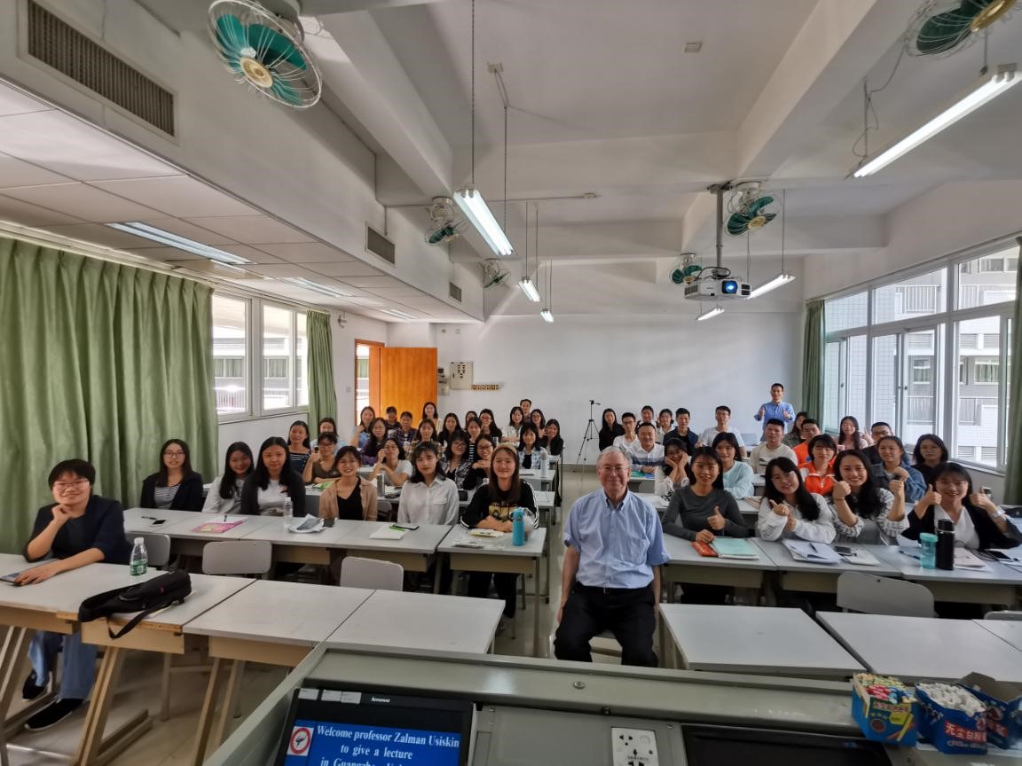 Usiskin教授风趣幽默,不时与在座师生互动,整场报告在数学思维火花四起、欢快愉悦的氛围中进行。在最后的提问环节中,在场师生就报告疑惑以及中美相关数学教育问题进行了提问,Usiskin教授认真回答了所有问题,并告诉即将成为教师的研究生们,作为教师要从学生的角度思考问题,从学生的角度进行教学。报告结束后,Usiskin教授与参会师生合影留念,随后与本院数学教育方向教师进行深入学术交流。