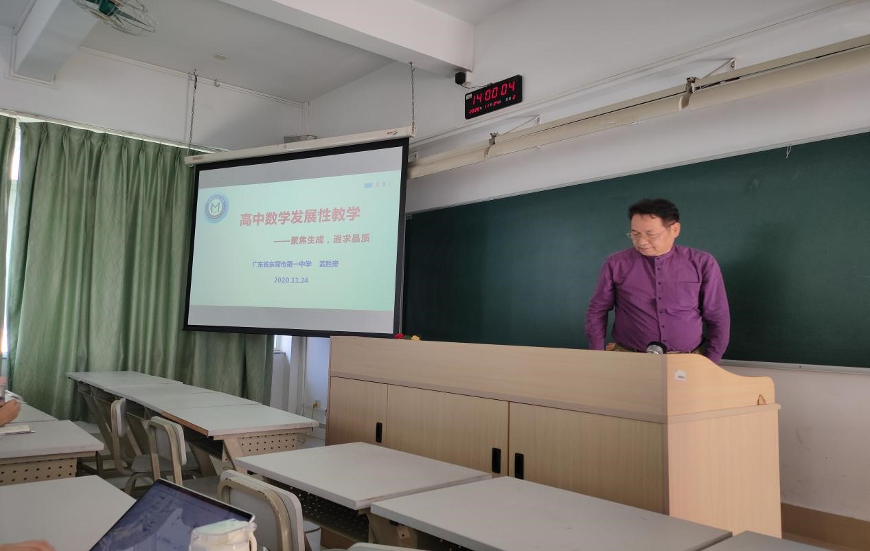 20级教育硕士和18级、19级数学与应用数学专业师范生开展“高中数学发展性教学——聚焦生成,追求品质”主题讲座,讲座围绕中学生数学学习发展力及数学教师数学教学发展力的养成与高中数学发展性教学顶层设计历程而展开。
