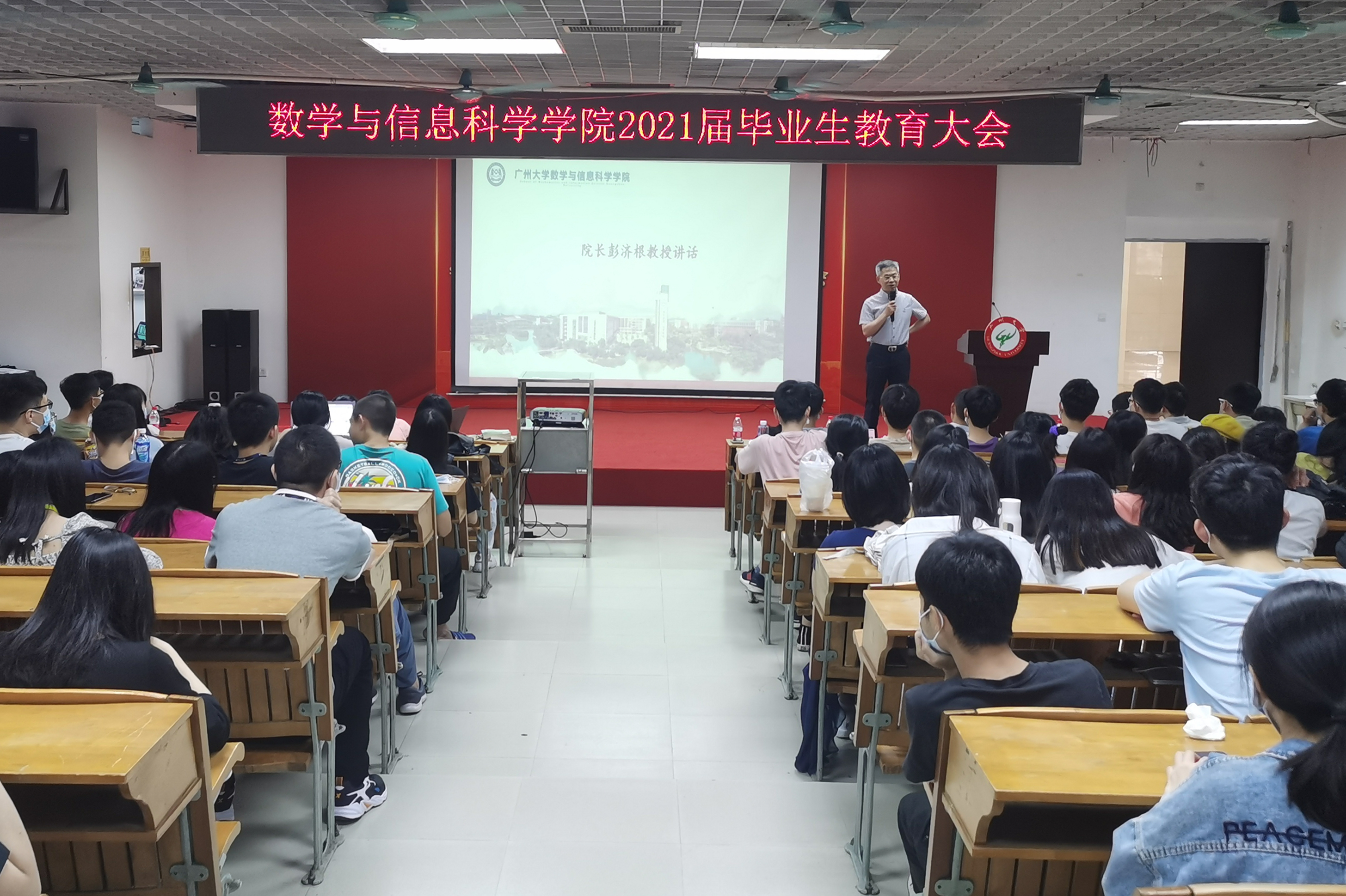 3月18日下午,数学学院召开2021届毕业生教育大会。院长彭济根教授,学院党委书记郑美玲,副院长王晓峰教授、钟育彬教授、蒲学科教授、焦峰副教授,学院党委副书记杨春荣,毕业班班主任、全体辅导员、科研办和教务办相关负责老师,以及全体毕业生近400人参加大会。