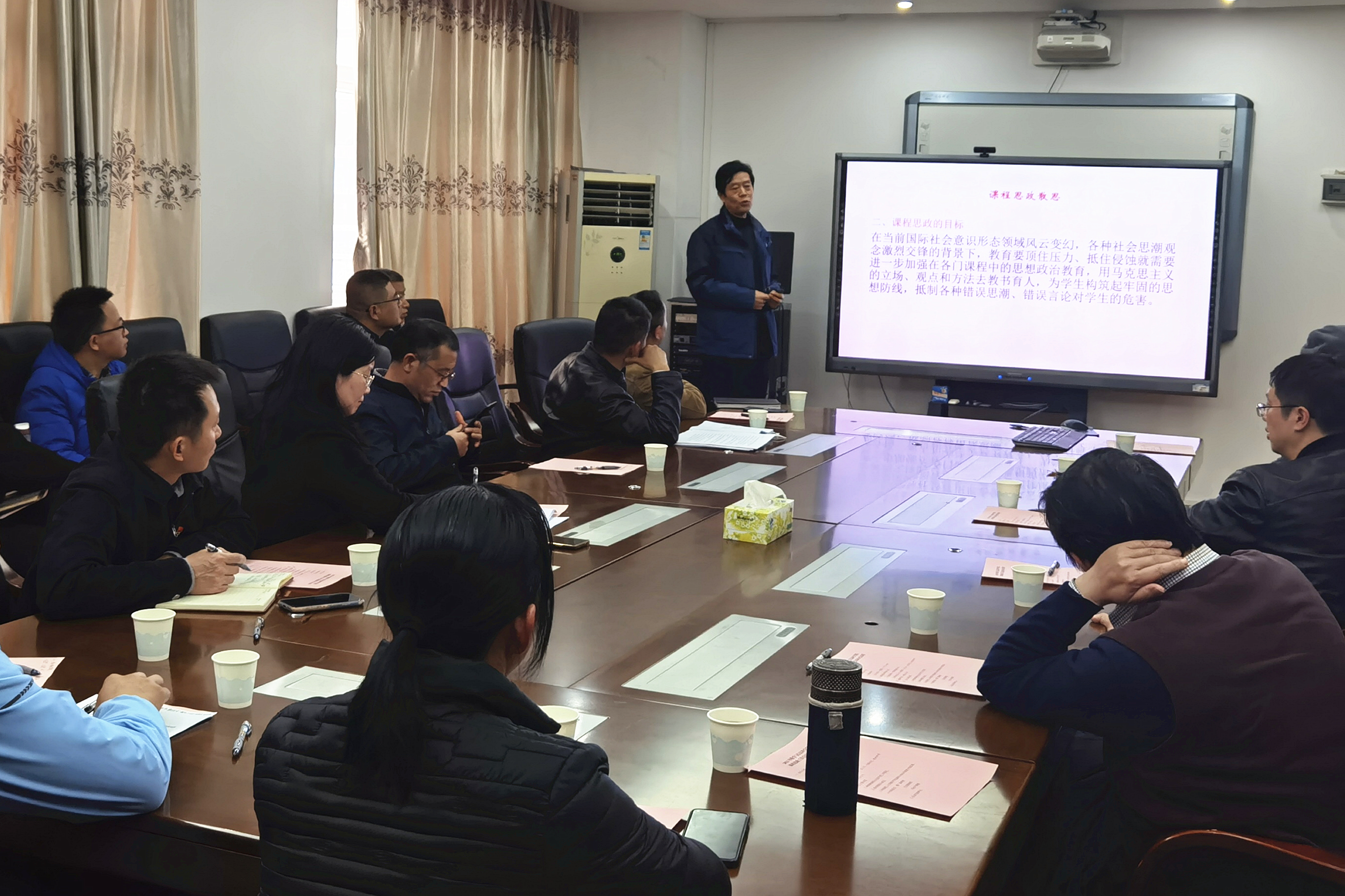 曹广福教授,国家杰出青年王友德教授作专题报告,全体院领导、各系部和行政办负责人、教师党支部书记、教师代表等参加研讨会。会议由学院党委书记郑美玲主持,院长彭济根教授代表学院对专家们对学院课程思政建设的关心和支持表示感谢。