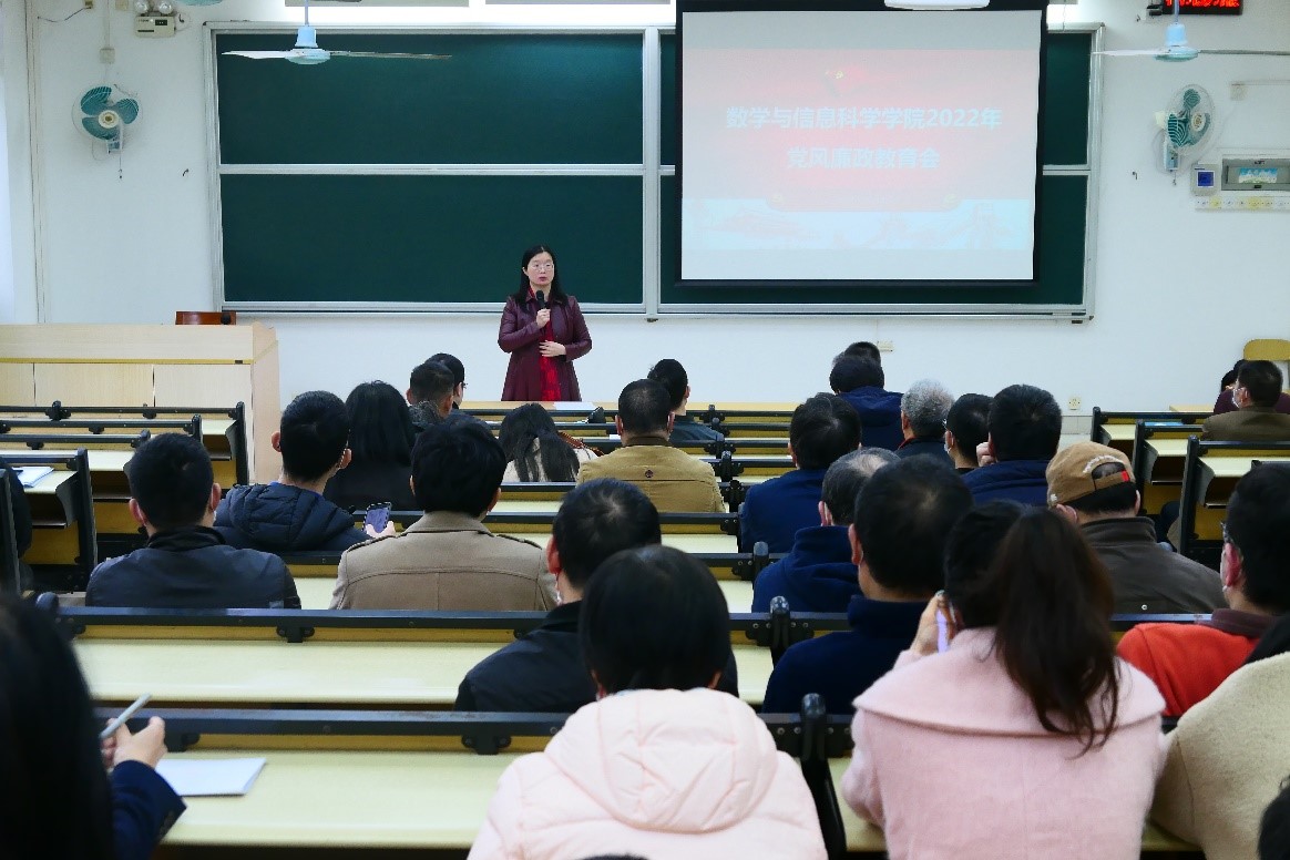 学院党委书记郑美玲同志传达了学校中层干部大会上校党委书记屈哨兵关于学校党建工作的讲话精神。她强调,学院要进一步强化党建引领,坚持党对各项工作的全面领导,统筹推进学院办学发展和疫情防控等各项重点工作,深入落实立德树人根本任务,着力推动学院一流学科建设再上新台阶。郑美玲同志还就党风廉政工作进行了专题教育和部署,要求全体教职工以习近平新时代中国特色社会主义思想武装头脑、指导实践、推动工作,旗帜鲜明讲政治,进一步增强“四个意识”、坚定“四个自信”、做到“两个维护”,言高为师,身正为范,保持忠诚干净担当政治本色,为学校高水平大学建设提供坚强政治保障,努力在培养一流人才、冲击一流学科、建设一流专业方面做出一流贡献,以优异成绩迎接党的二十大胜利召开。