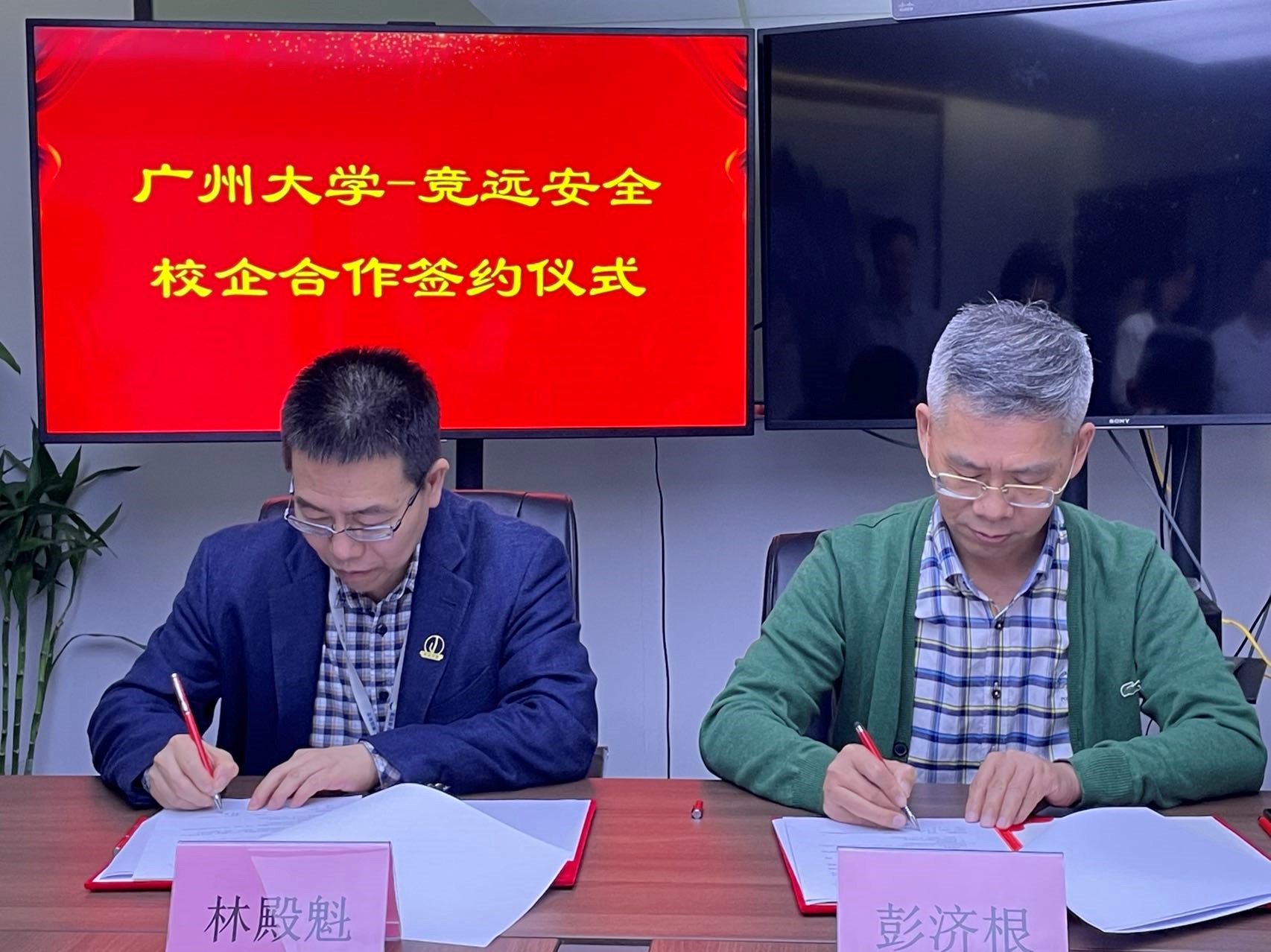 院长彭济根率队走访广州竞远安全技术股份有限公司,与该司董事长林殿魁签署毕业生就业实习实践基地建设协议。 信息科学系主任唐屹教授、学院林志强老师、学工办郭翠敏老师,竞远安全副经理梁承东、公司代表王海华、王正临、张少妹、叶筱艺等参加座谈会,共同见证签约和基地挂牌仪式。