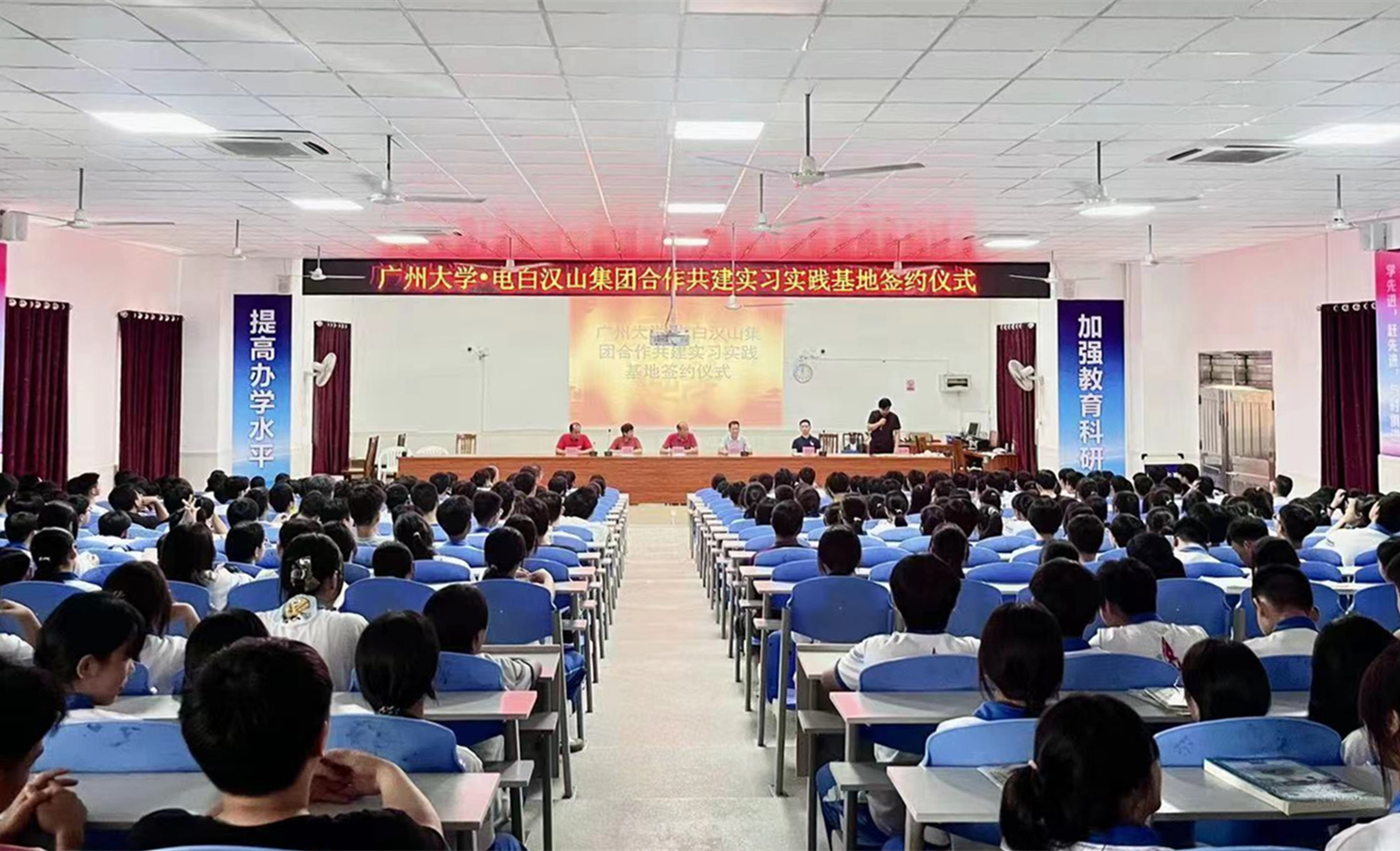 毕业生就业实习实践基地签约暨授牌仪式在电白汉山集团举行。我院党委副书记杨春荣、学工办龚克里老师,电白汉山集团董事长黄德明、汉山学校高中部校长陆青霜、初中部副校长张大开,汉山学校高一级全体师生参加签约仪式。