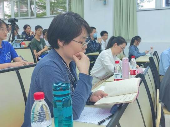 在比赛的过程中,评委们认真记录选手的表现。在答辩环节,评委们一针见血地点出了选手在比赛展示中的薄弱方面,提出自己的见解与建议,希望选手们从各位评委的点评中有所收获,进一步完善自我的教学设计,提高自身的师范技能能力。