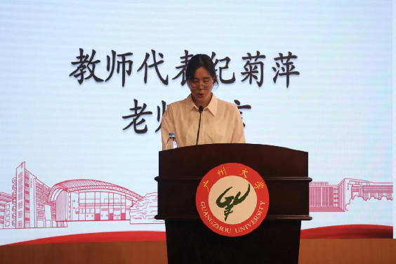 研究生新生代表何雅萱同学和本科生新生代表刘晋予同学上台发言。她们表示,无论是大学生还是研究生,都应该以学业为主,沉下心来,摆正求学的态度,转变学习心态。将学业追求和人生理想摆在第一位,同时也要珍惜时光,锐意进取,做砥砺前行的时代青年。