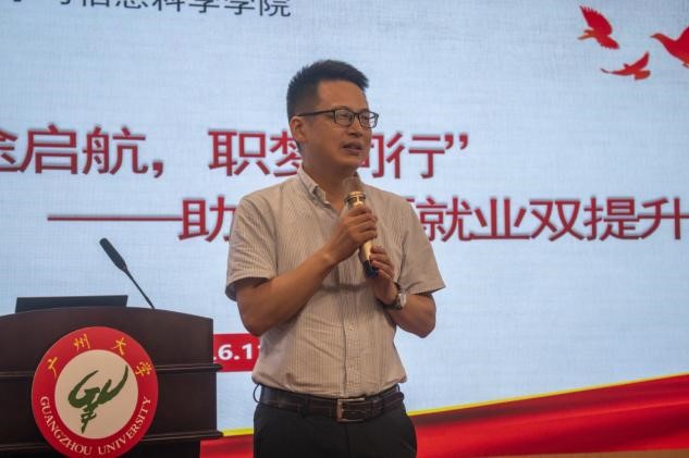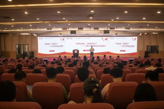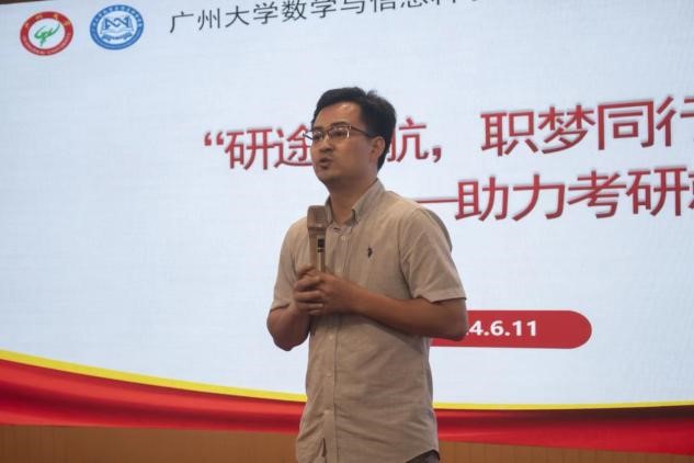 于6月11日下午在图书馆副楼五楼召开“研途启航,职梦同行”考研就业推进会。学而思广州分校校招经理张锦辉先生、学院领导、系主任、辅导员及21级全体学生参加了本次大会。