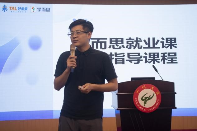 随后,学而思广州分校校招经理张锦辉先生给同学们分享面试技巧。张经理围绕面试准备、简历撰写以及企业看中的能力等方面进行了深入分享。他详细介绍了不同面试形式的基本流程和注意事项,并传授了应对各种面试形式的应试技巧。张经理的分享不仅让同学们对面试有了更全面的了解,也增强了他们的求职信心。