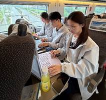 正门前定格首张合影,正式开启访学之旅。列车途中,学子们翻阅文献、推演公式,以奋进姿态为这场学术之约做好准备。