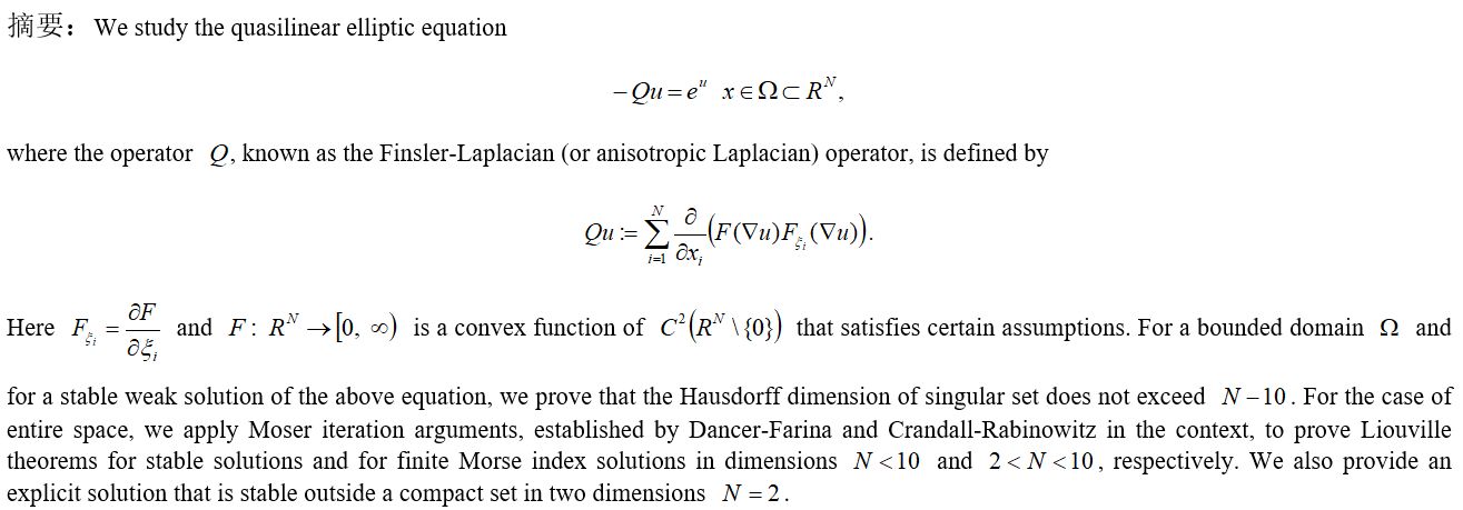 题目:Partial regularity and Liouville theorems for stable solutions of anisotropic Liouville equation