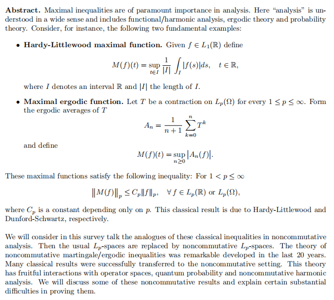 题目:Maximal inequalities in noncommutative analysis