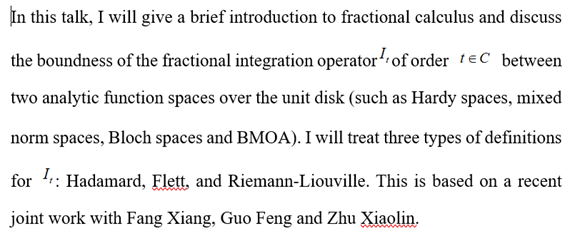 题目:Fractional calculus on analytic function spaces over the unit disk