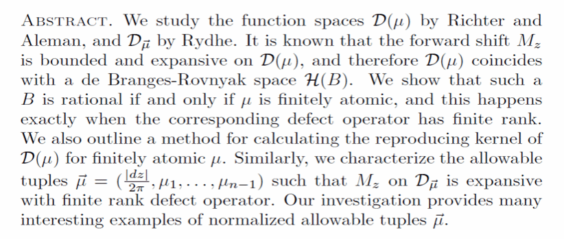 题目:On Dirichlet-Type and N-Isometric Shifts in Finite Rank De Branges-Rovnyak Spaces