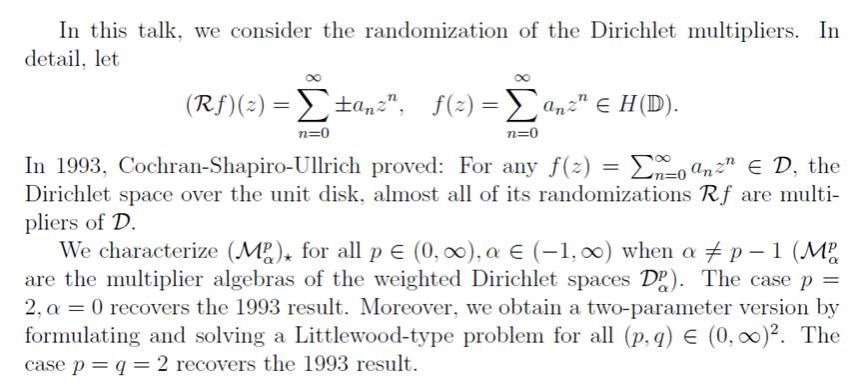 程国正,大连理工大学数学科学学院教授,博士生导师,主要从事函数空间上算子理论以及随机解析函数研究。近年来在IMRN, JFA, TAMS等国际数学刊物上发表论文十余篇,连续主持4项国家自然科学基金项目。
