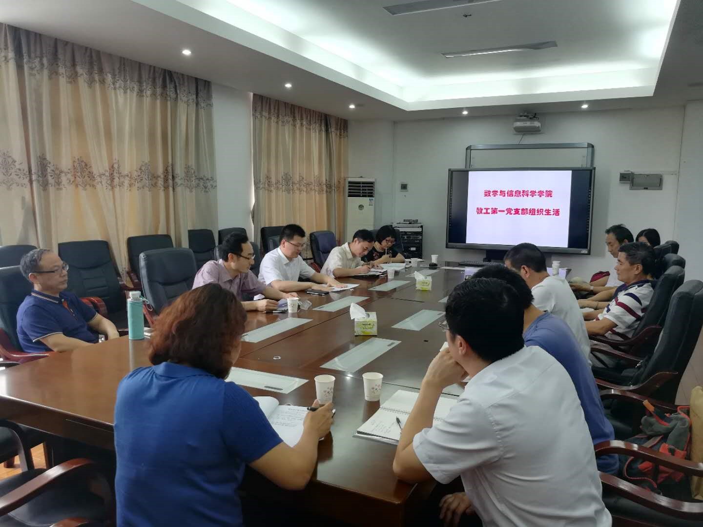 教工第一党支部专题组织生活会在行政西楼前座334学院会议室召开,专题学习新时代全国高等学校本科教育工作会议精神,校党委常委、副校长傅继阳以普通党员身份参加支部会议,支部全体党员参加会议,学院党委书记黄志凯、副书记孙凌列席会议,支部书记卢建川主持会议。