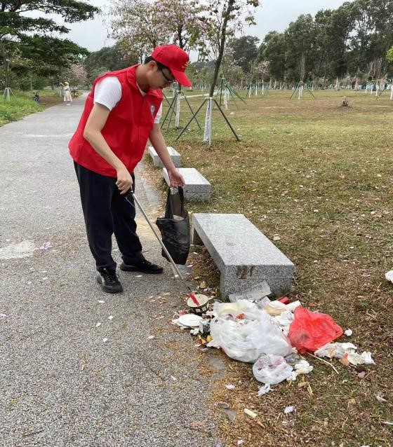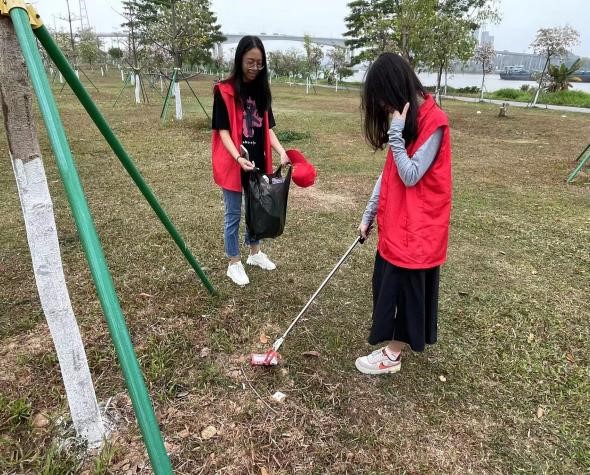据悉,大学城外环路江边草坪一直是附近居民及学生的休闲娱乐好去处,但部分游客不注重环境卫生,在露营和野餐后留下不少垃圾,大大增加了环卫工人的清扫压力。数学学院围绕志愿服务和劳动教育实际,将志愿服务融合新时代大学生劳动教育的实践,组织学院师生每周开展卫生清洁劳动志愿服务活动。活动中,志愿者们带着提前准备好的劳动工具,按照老师的安排,穿梭于学校周边道路和绿化带之间,有的清扫人行道垃圾;有的捡拾绿化带的烟头、枯叶……同学们干得热火朝天,经过同学们的努力,大学城外环周边绿化恢复干净整洁。