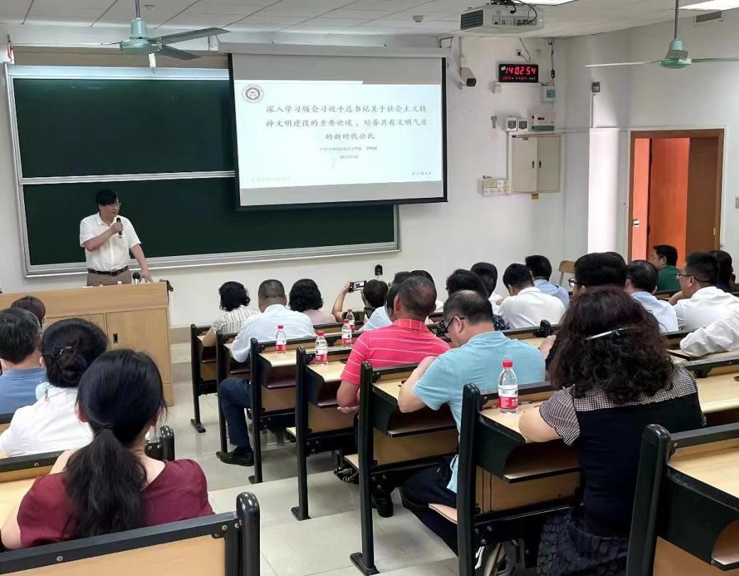 罗明星教授以《深入学习领会习近平总书记关于社会主义精神文明建设的重要论述 ,培养具有文明气质的新时代公民》为题,从精神文明本质上是人的文明、做文明人是人类社会的价值追求、新时代公民应该具有的文明气质、青年大学生如何走向文明等四个方面,对习近平新时代中国特色社会主义思想进行全面解读,内容详实、深入浅出,逻辑清晰、环环相扣,既有政治高度、理论深度,又有实践指导和情感共鸣,为大家带来了一场富有指导性、针对性的辅导报告。