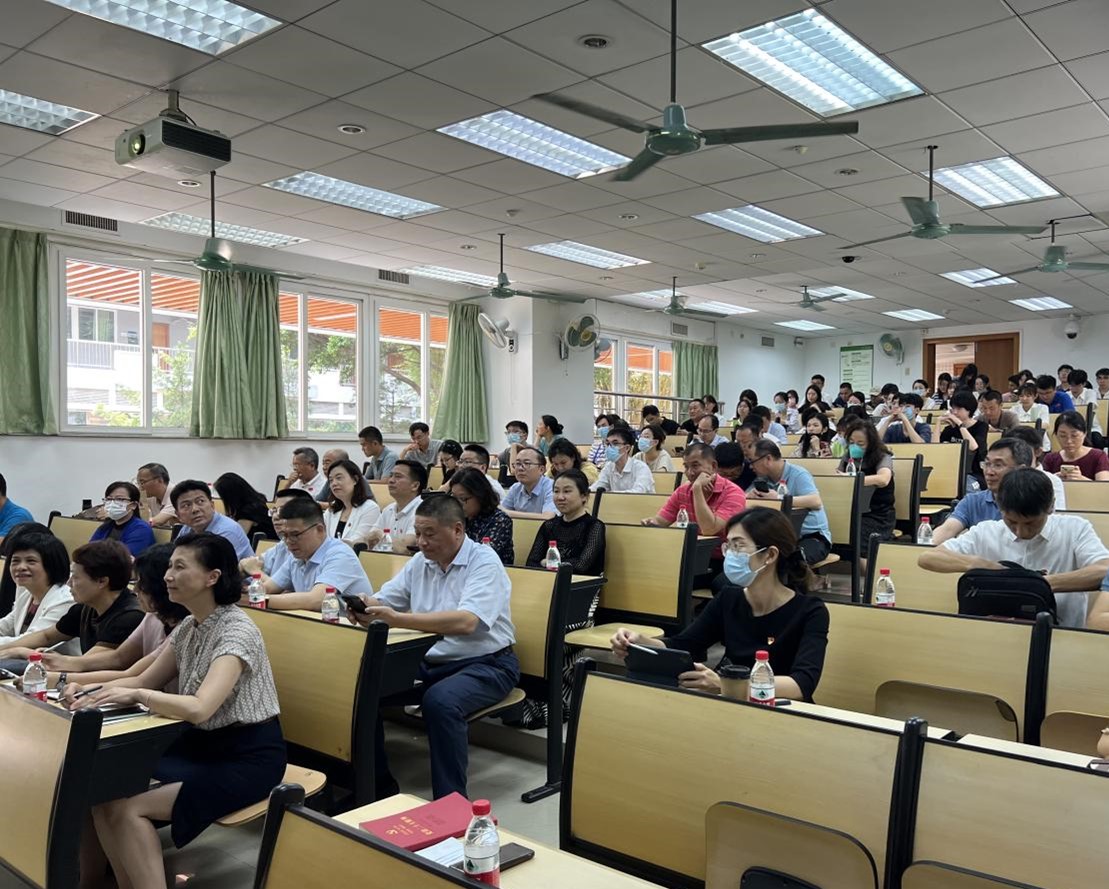 马克思主义学院党委书记罗明星教授作主题教育读书班专题辅导报告。十个学院的党委委员、党委理论学习中心组成员、基层党支部书记等同志参加了专题辅导报告会。
