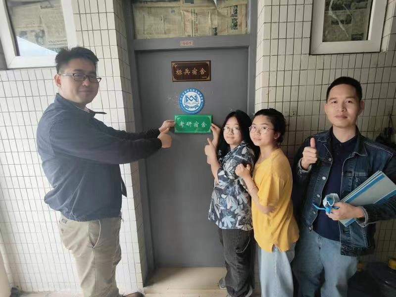 活动中,学院党委副书记张昭,辅导员黄思韵、龚克里深入学生考研宿舍,为考研学子加油打气。张书记与同学们进行亲切的交流,询问同学们的考研意向、备考状态以及需要学院提供什么帮助等,叮嘱同学们:考研宿舍挂牌活动不要流于形式,要以挂牌活动为契机,激发学习的热情,燃起了奋勇拼搏的斗志,舍友间相互督促、共同进步。同时还提醒同学们要注意劳逸结合,要适当锻炼身体,保持良好的体魄和积极向上的心态。相信同学们会以这次挂牌活动为新的起点,勇往直前,一战成硕!