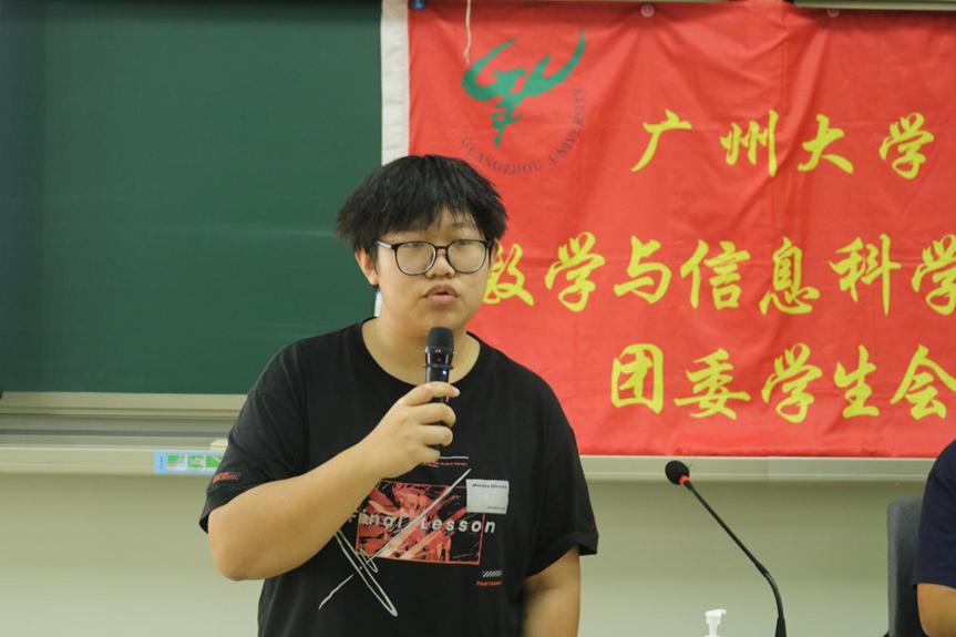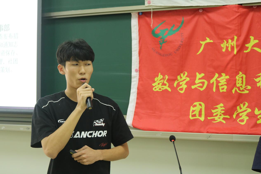 冯銮威师兄向大家介绍了部门的主要工作:奖学金、助学金认定等等,以及一系列志愿活动,并且表示希望让经济困难的学生团结互助、自强不息,接受社会资助的同时心怀感恩,提高自身综合素质。