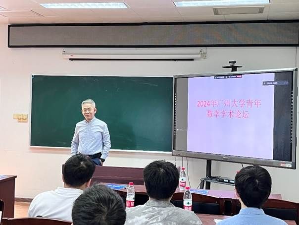 彭济根院长代表学院致开幕辞,他希望通过青年数学学术论坛加强青年教师、研究生之间的学术交流与合作,促进彼此了解学术背景和研究方向,培养杰出青年数学人才。他还鼓励青年学者要多做兼具理论深度、应用前景和科技前瞻性的创新工作,做学术道路的探索者。