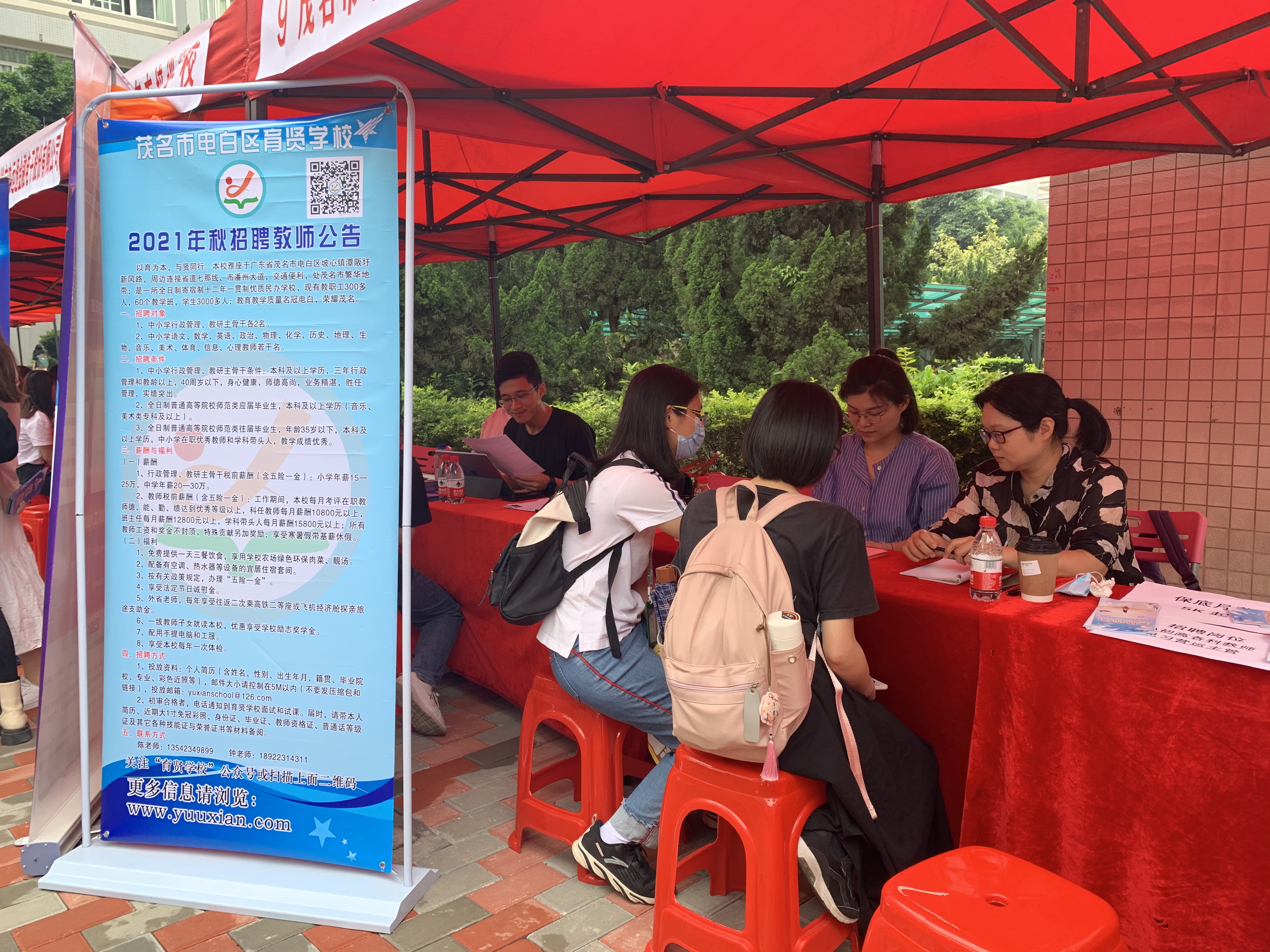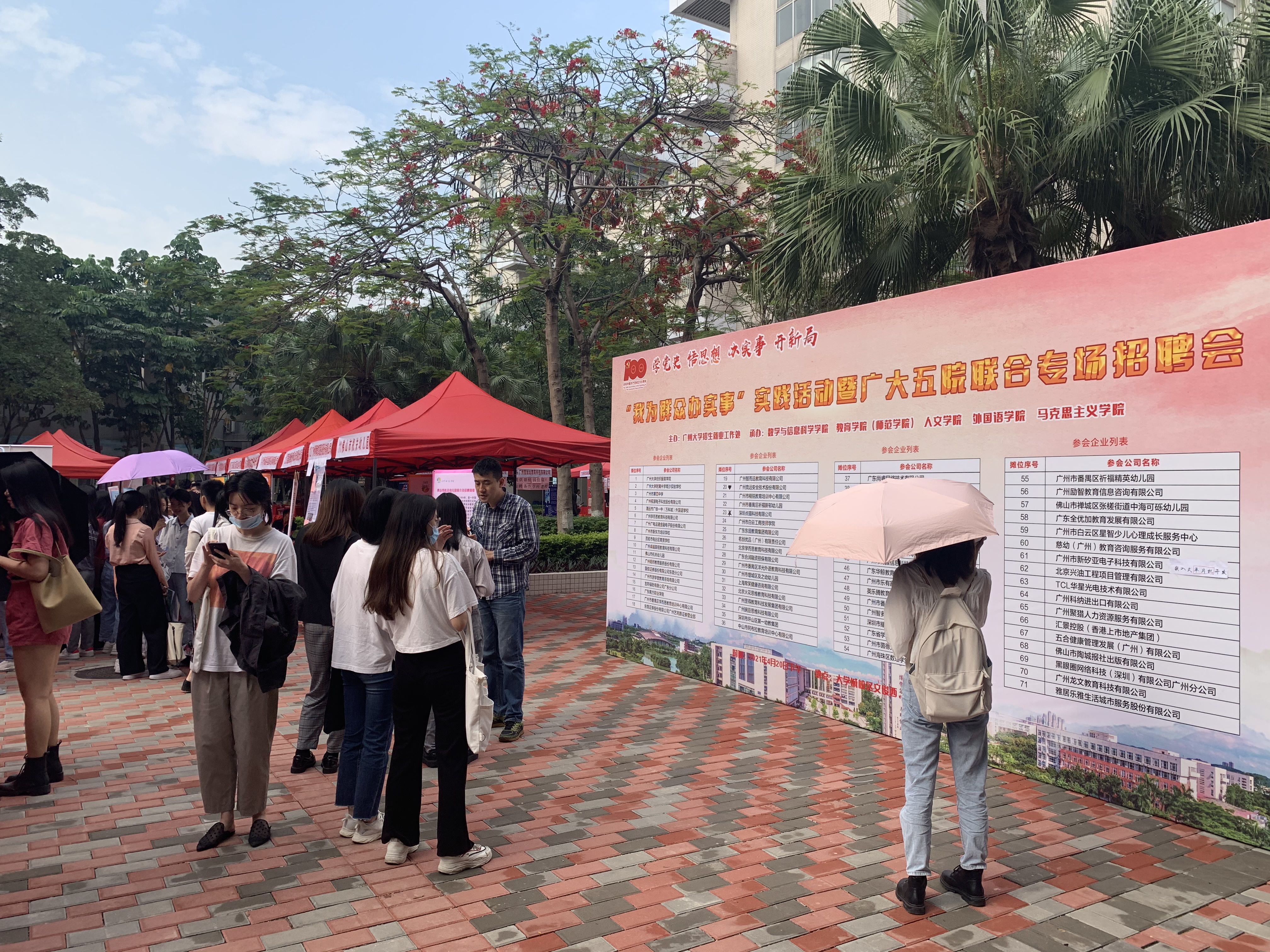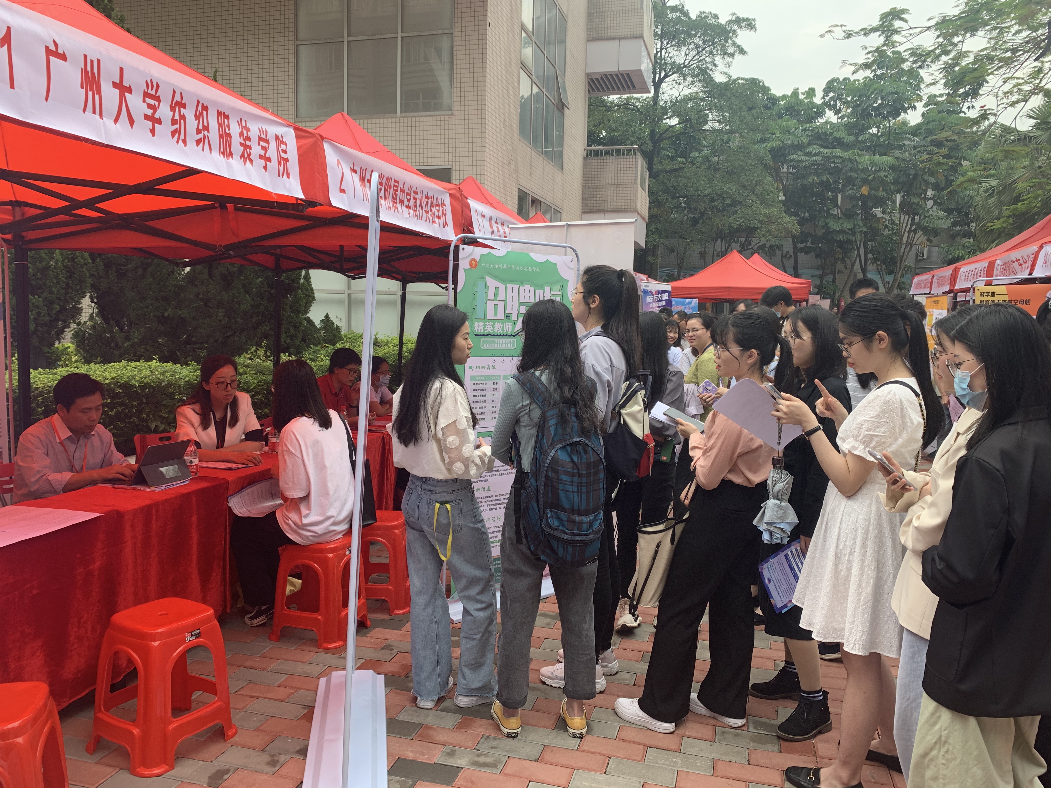 纺织服装学院、广大附中南沙实验学校、广州四中、广铁一中外国语学校、茂名市电白区育贤学校、广州视源电子科技股份有限公司、广电运通金融电子股份有限公司、国信证券、佛山市机关幼儿园、新东方、学而思、卓越等优质企业也参与其中,吸引了全校一千多名学生前来应聘。